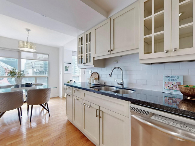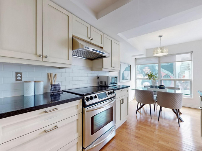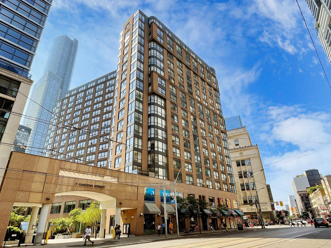 The building is just right above the college Subway, close to shops, restaurants, mall and hospital. Building amenities include 24 hour security, TV lounge, underground visitor's parking, library, full gym with indoor track, billiard room, saunas & party room.